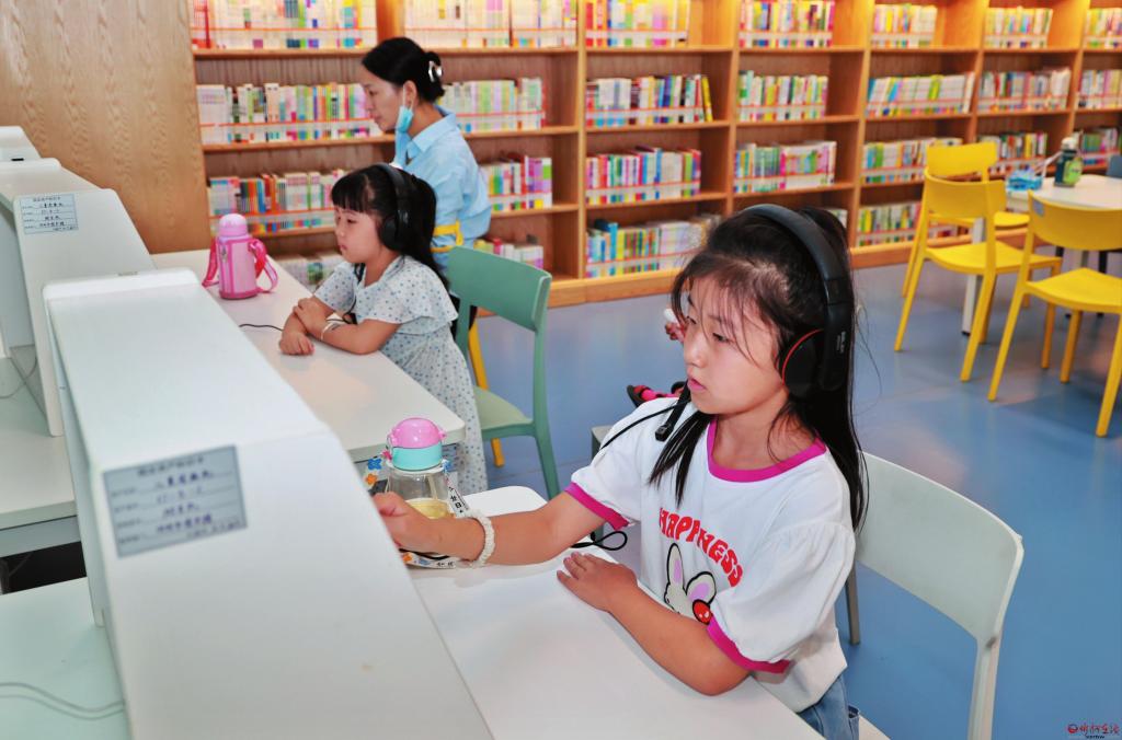 多彩暑期是孩子們博覽群書的最佳時期。7月28日,在市圖書館,小讀者們在兒童閱讀機上體驗點觸、互動學(xué)習(xí)的快樂。(