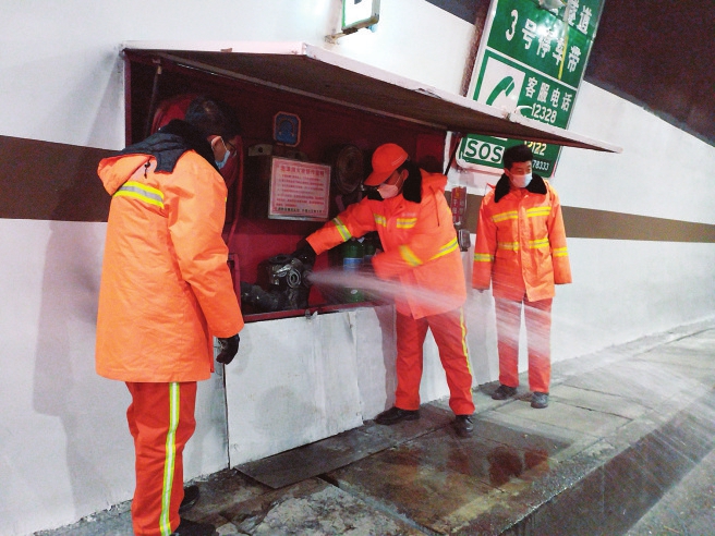 朔州高速公路管理有限公司工作人員正在檢修隧道路燈等設(shè)備。本報(bào)記者馬占富攝