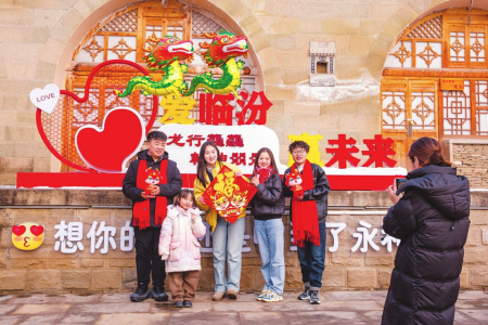 2月11日,在永和縣回家過年網紅打卡點,游客在拍照留念。春節(jié)期間,該縣舉辦了“紅紅火火過大年 熱熱鬧鬧來接龍”春節(jié)系列文化活動,讓游客在歡樂祥和的氛圍中歡度佳節(jié)。閆銳鵬攝