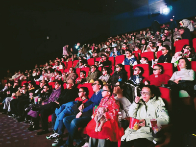 圖③2月13日,觀眾在太原龍湖萬達影城觀看春節(jié)檔影片。