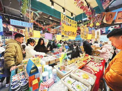 圖②2月11日,太原鐘樓街,市民正在挑選購買年貨。