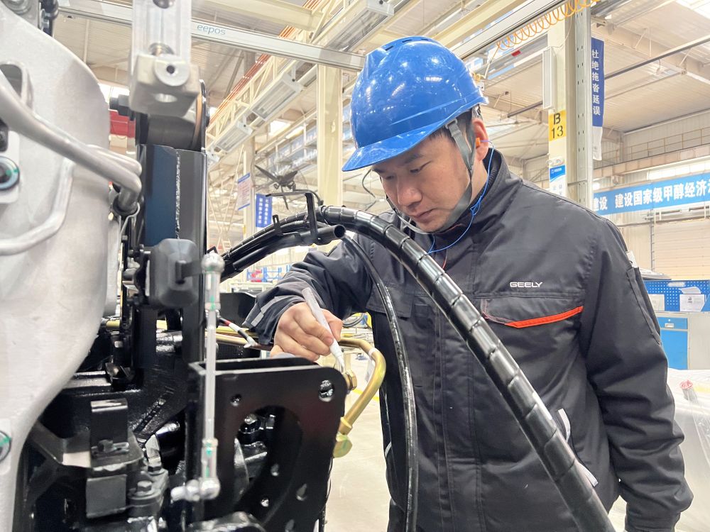 今年32歲的白鵬偉是車間的檢驗(yàn)員,他會(huì)細(xì)心檢驗(yàn)發(fā)動(dòng)機(jī)和駕駛艙230多顆螺絲的扭力值是否達(dá)標(biāo)。這項(xiàng)工作很考驗(yàn)工人的“繡花功夫”,既要精準(zhǔn)又要高效,之前每天最多能檢驗(yàn)8臺車?!敖衲暧唵卧黾雍芏?,大家干勁十足?!卑座i偉說,自己今年也會(huì)刻苦提升專業(yè)技能,練就與新工作量相適應(yīng)的過硬本領(lǐng),目標(biāo)是每天15臺車。