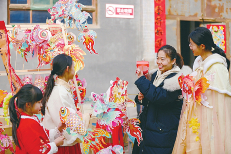 ⑥2月2日,人們?cè)谙宸诳h新城鎮(zhèn)丁村新春廟會(huì)上游玩體驗(yàn)。