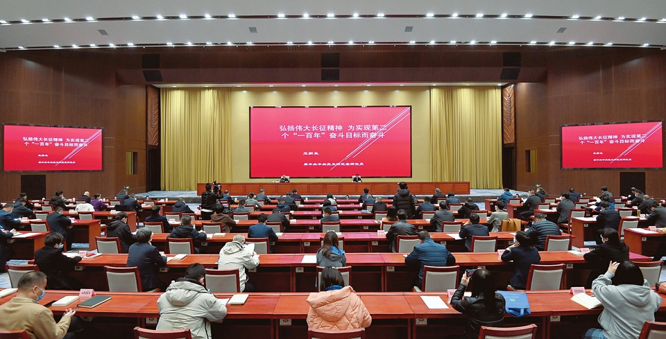 3月23日,中國(guó)共產(chǎn)黨人精神譜系系列宣講第三場(chǎng)長(zhǎng)征精神專題報(bào)告會(huì)現(xiàn)場(chǎng)。本報(bào)記者史曉波攝
