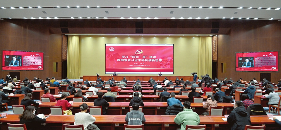 本報(bào)訊2月9日,省直工委舉辦中國共產(chǎn)黨人精神譜系系列宣講第十一場——“兩彈一星”精神專題報(bào)告會。省直各單位機(jī)關(guān)黨委書記、省委機(jī)關(guān)各部委、省科技廳、省科協(xié)、中國科學(xué)院山西煤化所部分黨員干部現(xiàn)場聆聽報(bào)告。