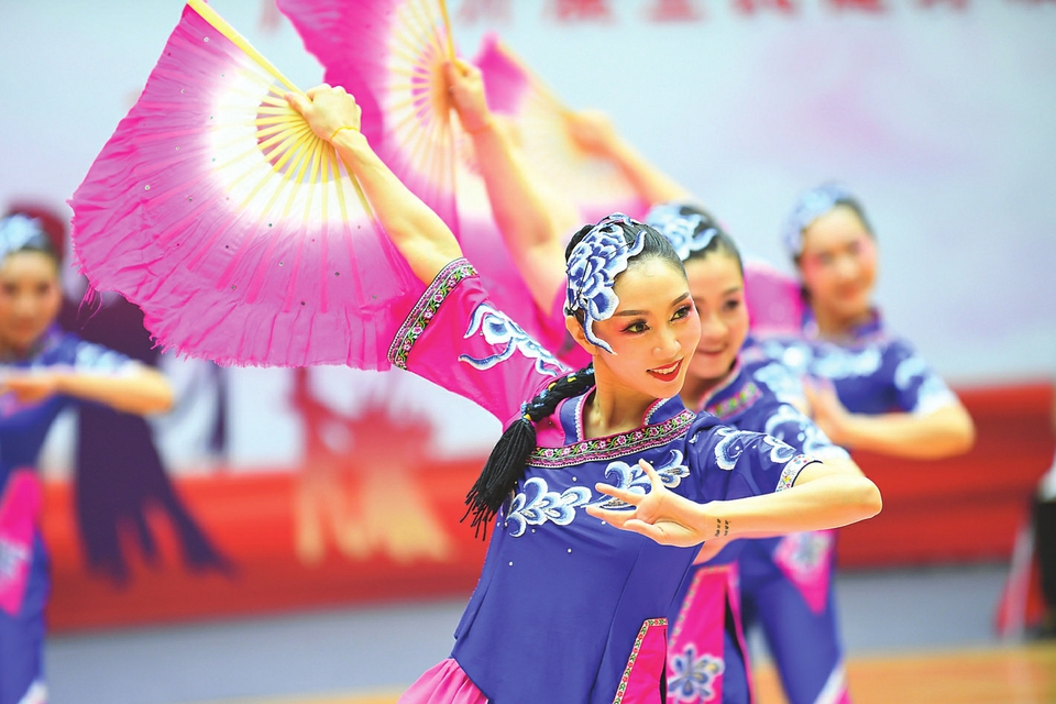 進(jìn)入決賽的健身秧歌代表隊(duì)正在表演。