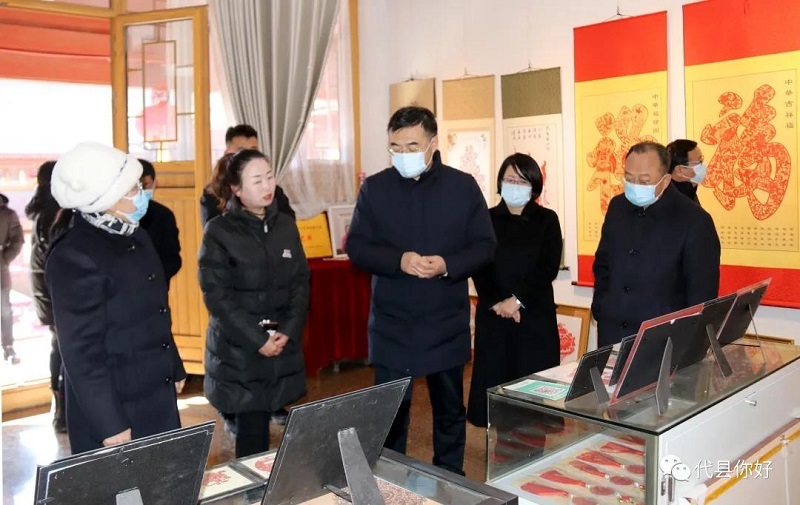 在楊氏古建展廳 在代縣非物質(zhì)文化遺產(chǎn)展廳,李建國(guó)先后參觀了楊氏古建、望臺(tái)磚雕、雁剪閣、雁晶刺繡、藍(lán)花工作室、華嚴(yán)藝術(shù)世界、天順昌泥塑、曉玲面塑、葉玲瓏和雁繡坊等展廳。李建國(guó)與從業(yè)藝術(shù)工作者親切交談,希望他們不斷淬煉技藝,進(jìn)一步提升產(chǎn)品藝術(shù)價(jià)值,研究消費(fèi)對(duì)象的需求,借鑒南方和其它非遺研發(fā)發(fā)達(dá)地市的先進(jìn)經(jīng)驗(yàn),將產(chǎn)業(yè)做得更大更強(qiáng)。