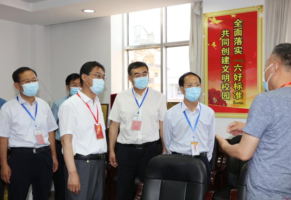 在忻州市高考指揮中心,李青山一行通過視頻指揮調(diào)度平臺(tái)實(shí)時(shí)察看各縣(市、區(qū))各考點(diǎn)考場試卷啟封、分發(fā)、開考情況,察看各考點(diǎn)周邊環(huán)境秩序,到保密室視頻察看各地試卷安全保密措施。隨后深入忻州十中和十一中考點(diǎn),仔細(xì)察看考生進(jìn)入考點(diǎn)時(shí)的測溫通道和安檢通道,實(shí)地走訪醫(yī)務(wù)室、考務(wù)室、保密室,通過視頻監(jiān)控察看各考場情況。李青山指出,高考是實(shí)現(xiàn)教育公平、社會(huì)公平的重要制度,承載著為國選人育人的重大使命。各級(jí)各相關(guān)部門要充分認(rèn)識(shí)做好疫情常態(tài)化防控形勢下高考工作的特殊性、重要性、復(fù)雜性,周密部署,扎實(shí)抓好高考期間各項(xiàng)工作,全力保障高考順利進(jìn)行。要按照職責(zé)分工和任務(wù)安排,抓好試題保密、考場引導(dǎo)、考風(fēng)考紀(jì)等關(guān)鍵環(huán)節(jié),切實(shí)把高考工作組織好、落實(shí)好,要加強(qiáng)考點(diǎn)周圍環(huán)境整治等高考各項(xiàng)服務(wù)保障,為考生營造安靜、有序、寬松的考試環(huán)境。各相關(guān)部門要按照高考有關(guān)規(guī)定,密切配合、通力合作,確保各項(xiàng)工作做到細(xì)而又細(xì)、實(shí)而又實(shí),把高考服務(wù)工作做得更細(xì)更扎實(shí),為廣大考生穩(wěn)定發(fā)揮提供良好考試環(huán)境。
