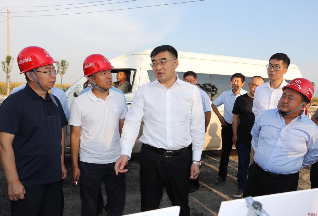 在太忻大道服務區(qū)建設基地。范濤 攝 9月12日,市委副書記、市長李建國深入太忻大道、東環(huán)路、忻原大道施工現(xiàn)場,察看工程建設進度,詳細了解質(zhì)量管理、交通組織、安全環(huán)保、要素保障等情況,現(xiàn)場研究解決工程建設中遇到的困難問題。副市長耿鵬鵬,市政府秘書長張艮生,市直相關部門負責人參加。