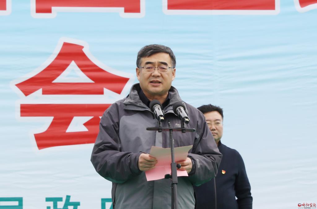 朱曉東講話。范濤 攝 偏關(guān)縣連續(xù)45年機(jī)關(guān)干部帶頭義務(wù)植樹,綠化彩化財化統(tǒng)籌推進(jìn),增綠補(bǔ)綠護(hù)綠科學(xué)施治,取得了治山增綠、涵水固沙的階段性成效,先后榮獲“造林綠化先進(jìn)縣”“生態(tài)建設(shè)紅旗縣”等多項榮譽(yù)。市委、市政府在偏關(guān)植樹現(xiàn)場舉行2023年全民義務(wù)植樹暨國土綠化試點示范項目啟動儀式,就是以具體行動認(rèn)真貫徹落實習(xí)近平生態(tài)文明思想,深入踐行“兩山”理論,動員全市上下聚力春季植樹造林和黃河流域國土綠化試點示范項目建設(shè),孜孜以求、久久為功,以更加有力的舉措推進(jìn)黃河流域生態(tài)保護(hù)和高質(zhì)量發(fā)展,以更加務(wù)實的成效加快美麗忻州建設(shè)。