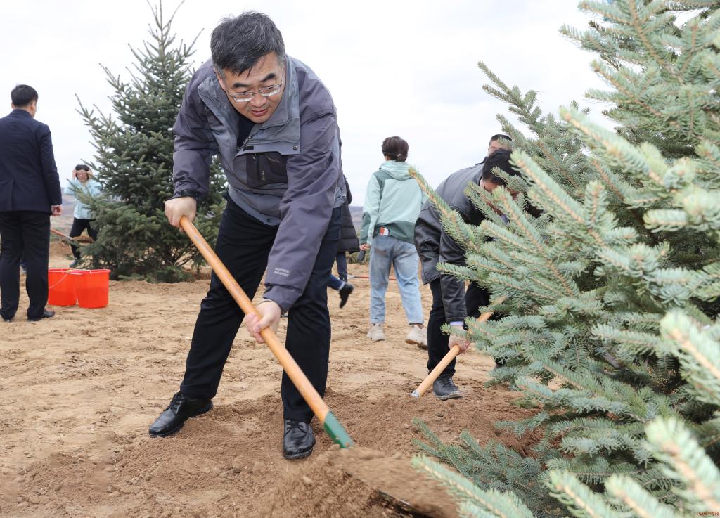 朱曉東與干部群眾一同植樹。范濤 攝 李建國對全市春季植樹造林和全市黃河流域國土綠化試點示范項目建設(shè)工作進(jìn)行了具體安排。他要求,各級各有關(guān)部門要圍繞全市“兩山四河一流域”生態(tài)建設(shè)格局,緊抓去冬今春雨水較多的有利時機(jī),加快推進(jìn)“兩山”生態(tài)保護(hù)修復(fù)、黃河流域和環(huán)京津冀生態(tài)防護(hù)等重點工作擴(kuò)面提質(zhì),確保年度人工造林40萬畝以上的目標(biāo)任務(wù)圓滿完成。要推深做實林長制工作,加大清尾補(bǔ)欠力度,確保去年未完成的營造林任務(wù)在今年5月底前全部完成。各級各有關(guān)部門要強(qiáng)化大局意識,整合資源力量,合力攻堅推進(jìn)黃河流域國土綠化試點示范項目,確保年度11.7萬畝國土綠化任務(wù)高質(zhì)量完成。特別是市規(guī)劃和自然資源局及4個黃河流域國土綠化試點示范項目縣,要堅持高標(biāo)準(zhǔn)定位,把好關(guān)鍵環(huán)節(jié),保證建設(shè)質(zhì)量,高位推動試點示范項目有序?qū)嵤?,為全省推動黃河流域生態(tài)保護(hù)和高質(zhì)量發(fā)展作出應(yīng)有貢獻(xiàn)。各級各部門要注重發(fā)揮黨員干部的示范帶頭作用,廣泛宣傳發(fā)動,積極組織動員,不斷激發(fā)全民參與義務(wù)植樹的自覺性和主動性,在全社會形成愛綠、植綠、護(hù)綠的良好導(dǎo)向,真正讓忻州的天更藍(lán)、山更綠、水更清,生態(tài)環(huán)境更美好。