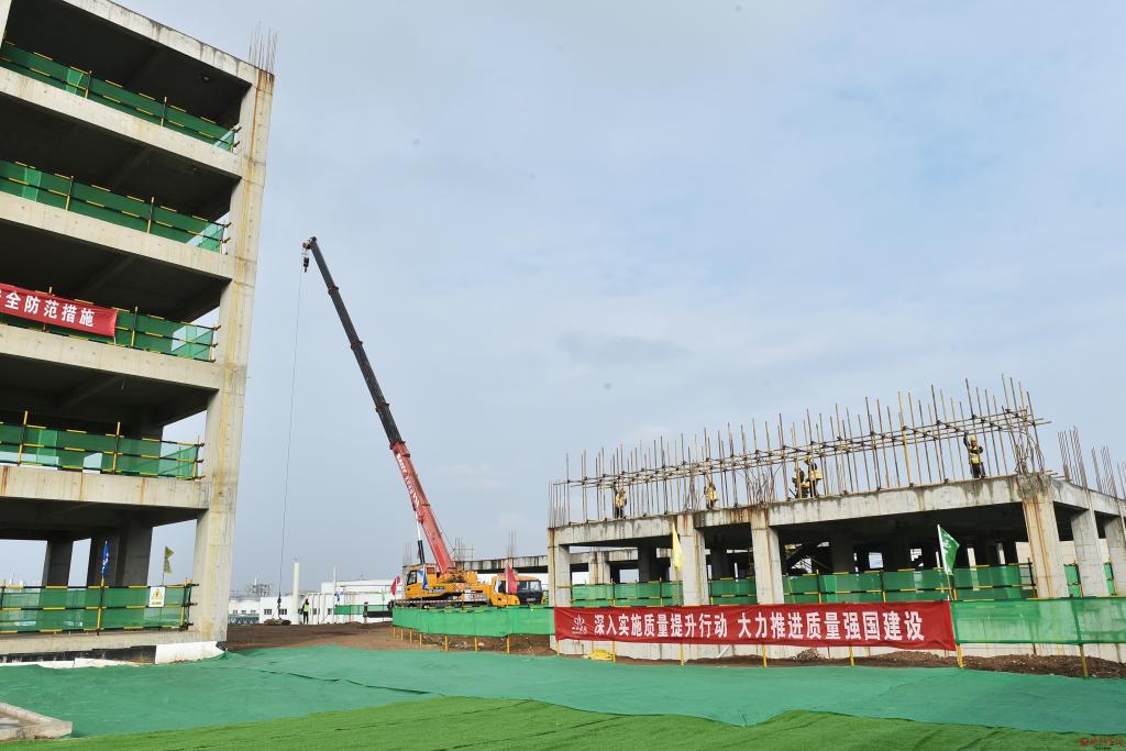 在電子信息裝備產(chǎn)業(yè)園觀摩檢查標(biāo)準(zhǔn)化廠房項目(二期)建設(shè)情況。馮曉磊攝