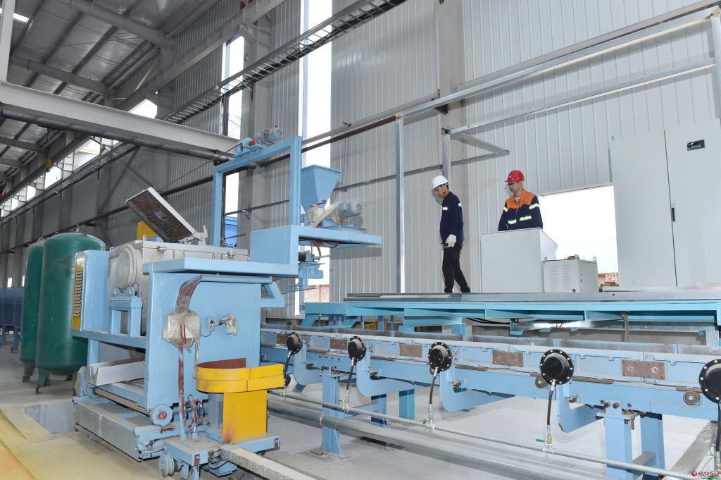 在山西榮安智能體育制造有限公司觀摩檢查年產(chǎn)10萬噸杠啞鈴體育用品及精密鑄件配套150萬件杠啞鈴項目建設(shè)情況。馮曉磊攝