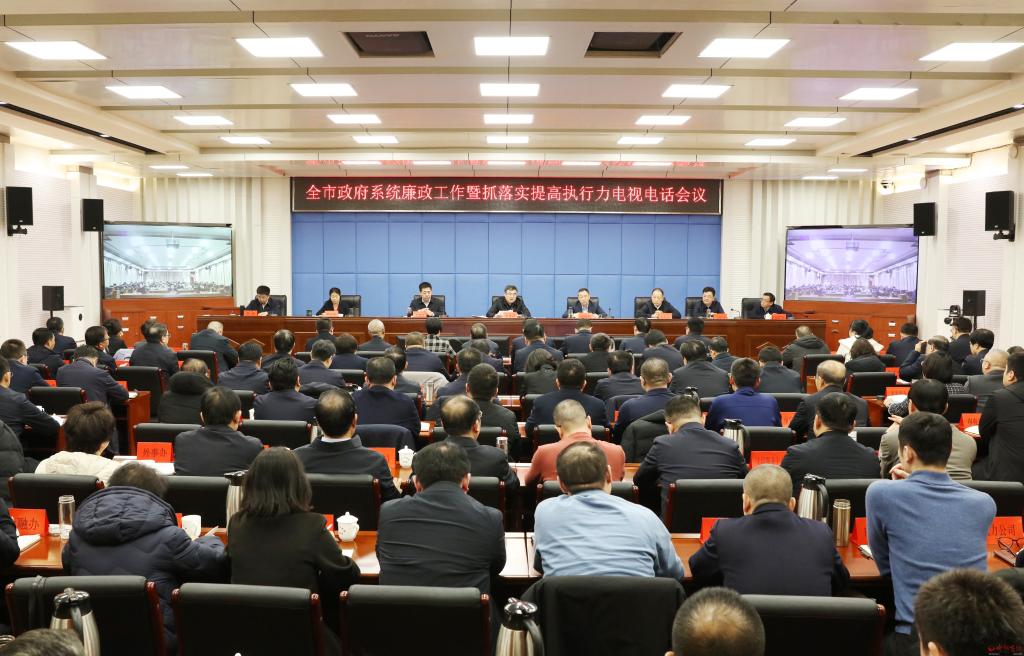 本報(bào)訊 (記者任逢春)2月22日,全市政府系統(tǒng)廉政工作暨抓落實(shí)提高執(zhí)行力會(huì)議召開,深入學(xué)習(xí)貫徹習(xí)近平總書記關(guān)于黨的自我革命的重要思想,全面貫徹黨中央國務(wù)院、省委省政府、省紀(jì)委和市委的系列會(huì)議安排,對(duì)縱深推進(jìn)政府系統(tǒng)黨風(fēng)廉政建設(shè)和反腐敗斗爭工作進(jìn)行安排部署,號(hào)召全市政府系統(tǒng)振奮精神、擔(dān)當(dāng)作為,全面提升重實(shí)干、強(qiáng)執(zhí)行、抓落實(shí)的實(shí)踐成效,不斷開創(chuàng)全市高質(zhì)量發(fā)展、全方位轉(zhuǎn)型和現(xiàn)代化建設(shè)新局面。市委副書記、市長李建國出席會(huì)議并講話。市委常委、常務(wù)副市長趙新年主持會(huì)議。市委常委、市紀(jì)委書記、市監(jiān)委代主任王建江,副市長史紅波、賈玲香、王建峰、李碩,市政府秘書長張艮生出席。