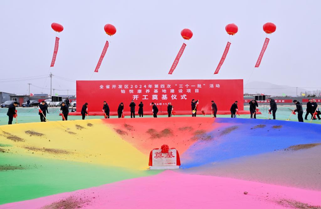 奠基儀式現(xiàn)場(chǎng)。馮曉磊 攝 11月26日,全省開(kāi)發(fā)區(qū)2024年第四次項(xiàng)目集中簽約一批、開(kāi)工一批、投產(chǎn)一批“三個(gè)一批”活動(dòng)舉行,我市在五臺(tái)現(xiàn)代農(nóng)業(yè)產(chǎn)業(yè)示范區(qū)設(shè)立分會(huì)場(chǎng),與全省同步舉行相關(guān)活動(dòng)。市委書(shū)記朱曉東出席,市委副書(shū)記、市長(zhǎng)李建國(guó)在省主會(huì)場(chǎng)出席。省優(yōu)化營(yíng)商環(huán)境和開(kāi)發(fā)區(qū)重點(diǎn)工作服務(wù)一組成員,市領(lǐng)導(dǎo)溫建軍、王建峰、崔崢嶺、孟宏斌、李軍,市政府秘書(shū)長(zhǎng)張艮生,市直相關(guān)部門(mén)、各縣(市、區(qū))黨政主要負(fù)責(zé)人,各開(kāi)發(fā)區(qū)(示范區(qū)、集聚區(qū))負(fù)責(zé)人及簽約和開(kāi)工項(xiàng)目代表等參加。