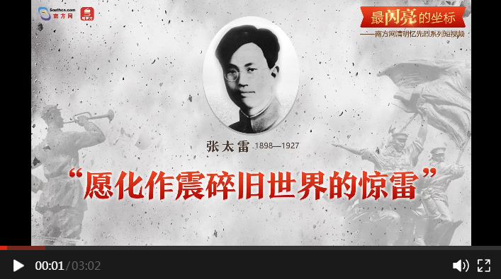 編者按:清明憶英烈,忠魂貫長空。4月1日至5日,南方網(wǎng)、粵學習客戶端策劃推出“最閃亮的坐標”系列短視頻,通過挖掘廣東革命烈士的光輝事跡,與大家一起緬懷英烈、學習英烈。今天推出第二篇《張?zhí)祝涸富髡鹚榕f世界的驚雷》。