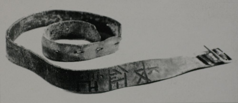 1936年7月,周廣才所在連隊在長征過草地時陷入斷糧困境。14歲的周廣才拿出一條皮帶,這是在一次戰(zhàn)斗中繳獲的戰(zhàn)利品。皮帶被吃了一截后,周廣才眼含熱淚和大家商量,希望能把剩余的皮帶留作紀念,帶著它“去延安見毛主席”。就這樣,大家懷著對革命勝利的憧憬,忍饑挨餓,將半截皮帶留了下來。在隨后的征程中,6名戰(zhàn)友相繼犧牲,只有周廣才到達了延安。他在皮帶的背面燙上“長征記”三個字以志緬懷。