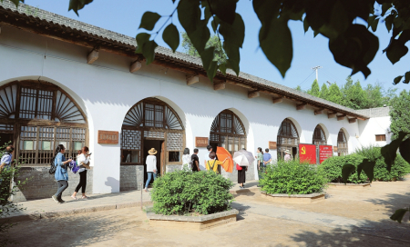 盛夏時節(jié),呂梁市興縣蔡家崖村一派生機,群山環(huán)抱下的晉綏邊區(qū)革命紀念館,莊嚴地矗立在蔚汾河畔。