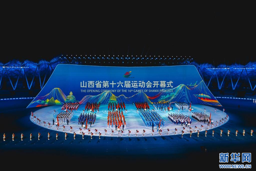 ??山西省運(yùn)動(dòng)會(huì)會(huì)旗、第十六屆省運(yùn)會(huì)會(huì)旗入場(chǎng)。新華網(wǎng) 發(fā)(馬夢(mèng)迪 攝)