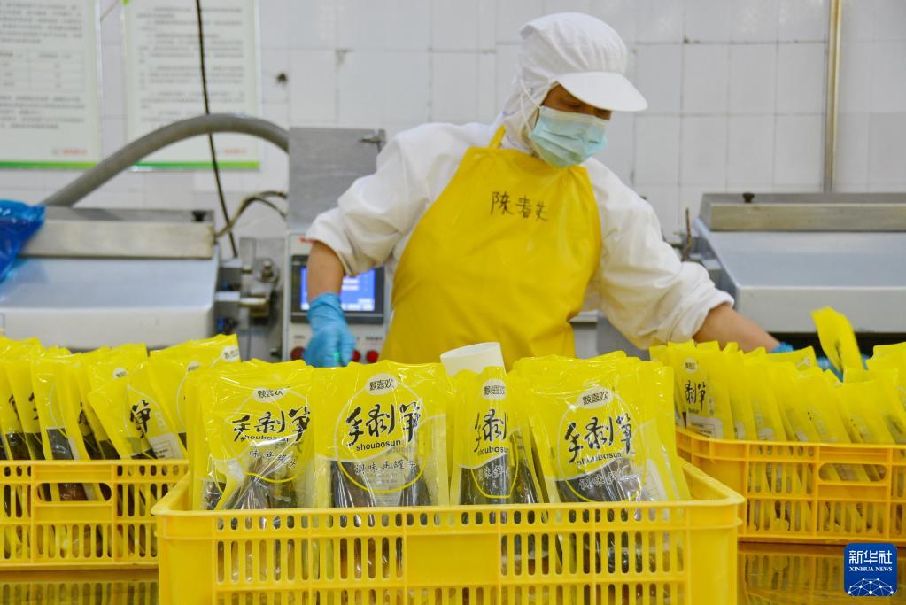 工人在福建省建甌市一家筍竹加工企業(yè)加工手剝筍產(chǎn)品(6月8日攝)。新華社記者 張華迎 攝 在東峰鎮(zhèn),像葉揚(yáng)杰這樣的種植戶不在少數(shù)。東峰鎮(zhèn)農(nóng)技站站長(zhǎng)侯立和告訴記者,目前東峰鎮(zhèn)20個(gè)村場(chǎng)300多個(gè)農(nóng)戶從事雷竹種植,全鎮(zhèn)雷竹種植面積超過1萬畝,帶動(dòng)戶均年增收超過6萬元。 豐富的竹資源為建甌竹產(chǎn)業(yè)的發(fā)展提供了有利條件。裁斷、仿形成形、雕刻、拋光、打磨、噴油(漆)、烘干、包裝……在福建百豐竹業(yè)有限公司生產(chǎn)車間內(nèi),一塊塊竹胚板經(jīng)過加工被制成了竹砧板、竹面包板、竹托盤等產(chǎn)品。百豐竹業(yè)公司負(fù)責(zé)人楊書鋼介紹,企業(yè)去年產(chǎn)值1.2億元,納稅超過600萬元,帶動(dòng)周邊村莊200多名群眾就業(yè)增收。
