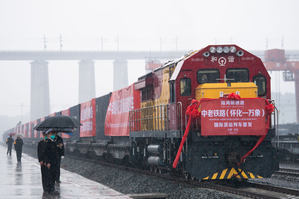 開(kāi)往老撾萬(wàn)象的中老鐵路(懷化—萬(wàn)象)國(guó)際貨運(yùn)列車(chē)在湖南懷化國(guó)際陸港準(zhǔn)備發(fā)車(chē)(2023年1月6日攝)。新華社記者 陳思汗 攝