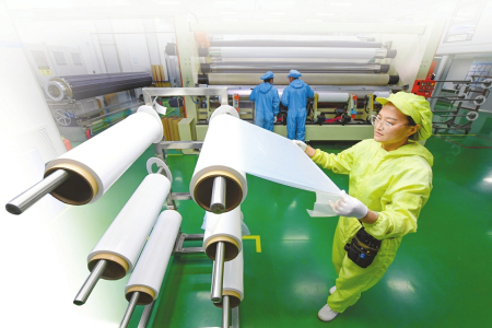 “只有這樣的構(gòu)造才能在隔絕電池正負(fù)極的情況下,還能保證鋰離子從中間自由通過??墒牵朐凇芰喜肌洗虺鲞@種小孔可不容易?!倍跑S剛介紹,當(dāng)下無論是手機(jī)、電腦,還是新能源汽車,鋰電池早已與我們的生活息息相關(guān)。但由于鋰電池隔膜科技含量高,制造過程涉及多個(gè)學(xué)科,幾年前國內(nèi)的生產(chǎn)工藝、產(chǎn)品性能、產(chǎn)業(yè)鏈完整度都很低,隔膜等關(guān)鍵材料長期被外資壟斷。
