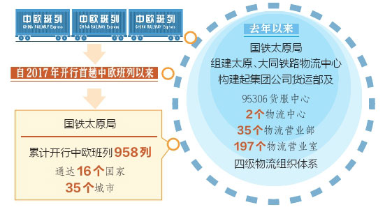 “自2017年開行首趟中歐班列以來,國(guó)鐵太原局累計(jì)開行的中歐班列已有958列,通達(dá)16個(gè)國(guó)家、35個(gè)城市?!眹?guó)鐵太原局貨運(yùn)部科長(zhǎng)田源介紹,“中歐班列已經(jīng)成為不沿海、不沿邊的山西省對(duì)外開放重要平臺(tái)?!?/p>