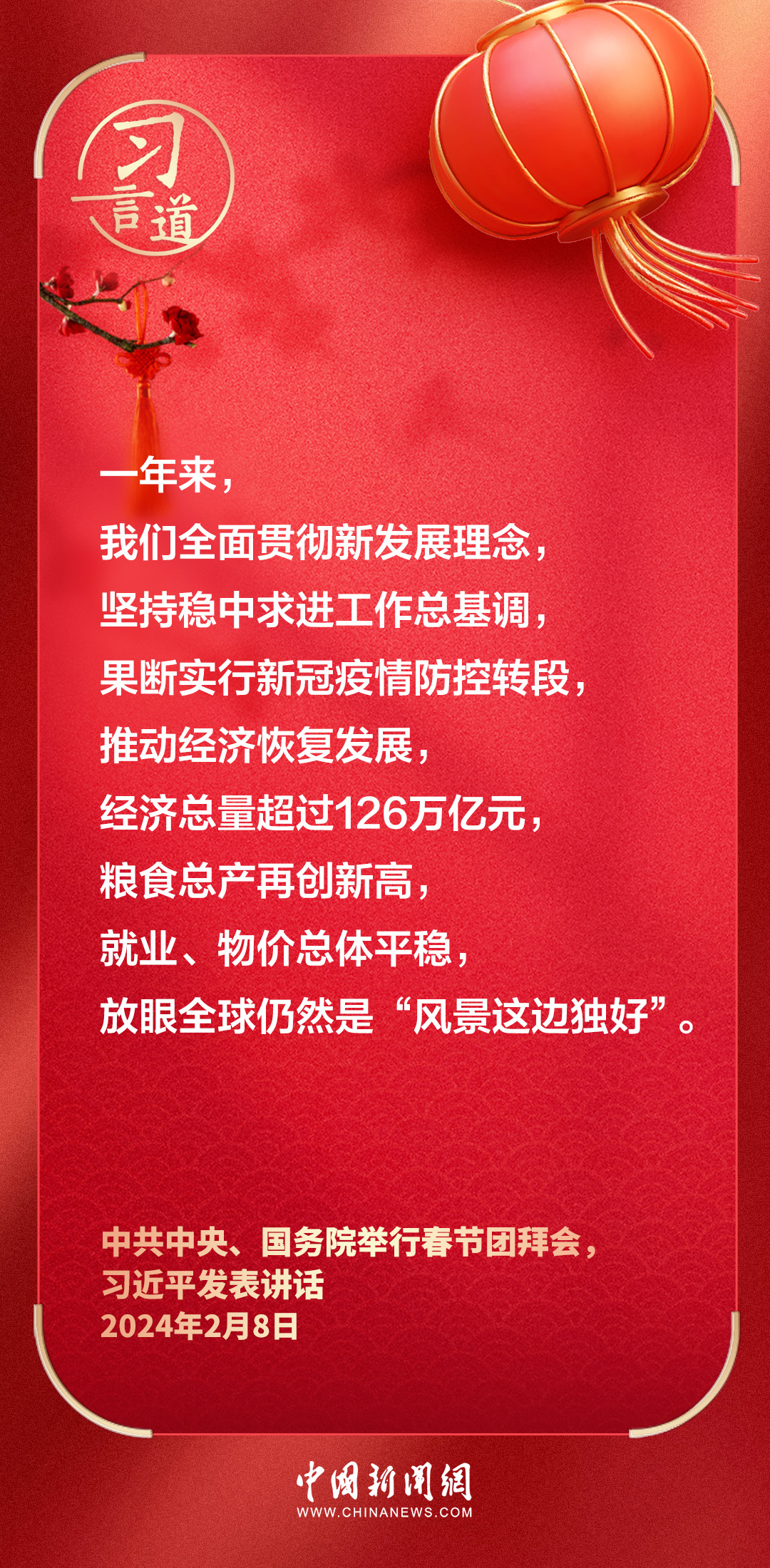 中共中央、國務(wù)院8日上午在人民大會(huì)堂舉行2024年春節(jié)團(tuán)拜會(huì)。中共中央總書記、國家主席、中央軍委主席習(xí)近平發(fā)表講話——
