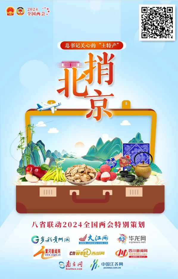 黨的十八大以來(lái),習(xí)近平總書記赴地方考察時(shí),經(jīng)常調(diào)研當(dāng)?shù)胤N植、加工等特色產(chǎn)業(yè),作出具體指導(dǎo)。苗繡、香包、竹子、黃精、蘋果、荔枝、黃花、茶葉……這些“土特產(chǎn)”,蘊(yùn)含著濃濃鄉(xiāng)情,也寄托著習(xí)近平總書記對(duì)于鄉(xiāng)村振興的殷切期望。 2024年全國(guó)兩會(huì)召開(kāi)之即,多彩貴州網(wǎng)、西部網(wǎng)、華龍網(wǎng)、四川新聞網(wǎng)、中國(guó)江蘇網(wǎng)、黃河新聞網(wǎng)、大江網(wǎng)、南方網(wǎng)八省市媒體聯(lián)合推出《總書記關(guān)心的“土特產(chǎn)”捎北京》。 “土特產(chǎn)”們有備而來(lái),打開(kāi)行李箱,跟我們一探究竟! 識(shí)別圖片二維碼查看H5