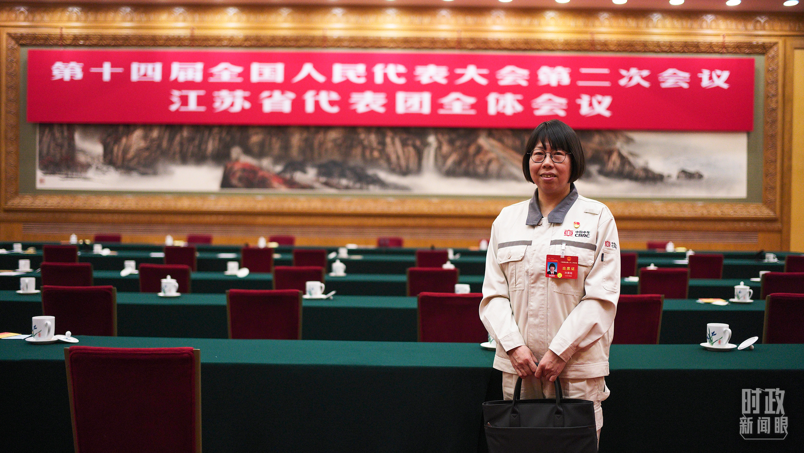 △吳新明代表。(總臺(tái)國廣記者李晉拍攝) 當(dāng)天最后發(fā)言的孫景南代表,是中車南京浦鎮(zhèn)車輛有限公司的一名電焊工,有著“東方女焊神”之稱。近年來她帶領(lǐng)團(tuán)隊(duì)完成技術(shù)攻關(guān)200多項(xiàng),創(chuàng)造經(jīng)濟(jì)效益4500多萬元。 孫景南在向總書記匯報(bào)“弘揚(yáng)工匠精神”這一主題時(shí),特別提到了自己對(duì)“匠”字的理解:對(duì)專業(yè)技能要斤斤計(jì)較一點(diǎn)。 總書記去年在江蘇團(tuán)強(qiáng)調(diào)“兩個(gè)必?!?,其中一個(gè)就是制造業(yè)必須筑牢。孫景南告訴《時(shí)政新聞眼》,她今年提交了一份代表建議,內(nèi)容就是進(jìn)一步推動(dòng)裝備制造業(yè)高質(zhì)量發(fā)展。