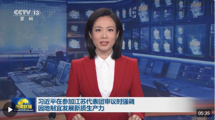 3月5日下午,習(xí)近平總書記參加江蘇代表團(tuán)審議。 去年1月,總書記在江蘇當(dāng)選全國人大代表。去年兩會(huì)期間,他首次到團(tuán)組,就是到江蘇代表團(tuán),強(qiáng)調(diào)牢牢把握高質(zhì)量發(fā)展這個(gè)首要任務(wù)。 今年這次到江蘇團(tuán),總書記重點(diǎn)談的是因地制宜發(fā)展新質(zhì)生產(chǎn)力。發(fā)展新質(zhì)生產(chǎn)力,為何強(qiáng)調(diào)“因地制宜”?在江蘇團(tuán),總書記還傳遞了哪些重要信息?《時(shí)政新聞眼》兩會(huì)特刊為你解讀。 01 聽代表心聲 謀發(fā)展大計(jì) 黨的十八大以來,習(xí)近平總書記先后5次到江蘇考察,去年就去了兩趟。黨的十八大后召開的首次全國兩會(huì)上,總書記就曾到江蘇團(tuán)參加審議。加上今年這一次,已是他第三次參加江蘇代表團(tuán)審議。 去年7月到江蘇考察時(shí),總書記說,“江蘇一直是我的關(guān)注點(diǎn)、調(diào)研點(diǎn)和研究點(diǎn)?!薄拔覍?duì)這里的關(guān)注,始終是進(jìn)行時(shí)?!?/p>