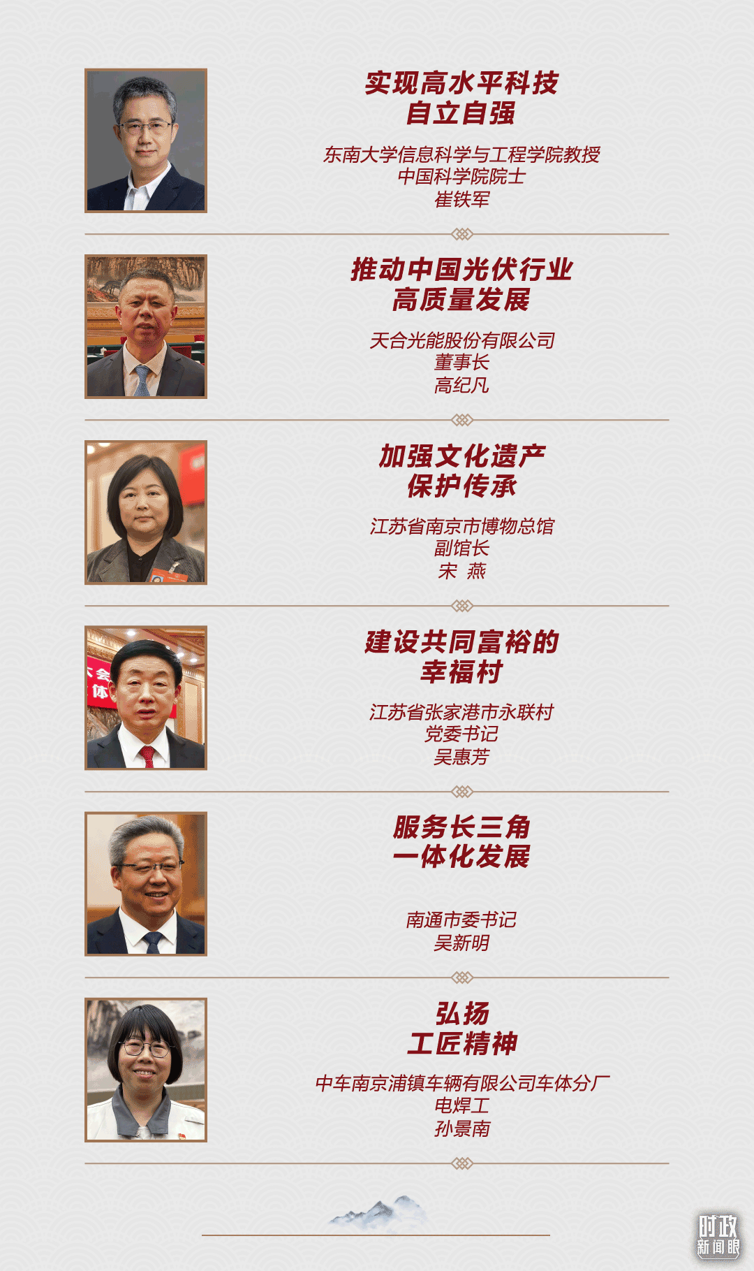△江蘇代表團(tuán)審議現(xiàn)場(chǎng)氣氛熱烈。 在2024年春節(jié)團(tuán)拜會(huì)上,習(xí)近平總書記發(fā)出召喚:“甲辰龍年,希望全國人民振奮龍馬精神,以龍騰虎躍、魚躍龍門的干勁闖勁,開拓創(chuàng)新、拼搏奉獻(xiàn),共同書寫中國式現(xiàn)代化建設(shè)新篇章?!?/p> 3月5日,恰逢驚蟄。一年春作首,萬事行為先。從“因地制宜發(fā)展新質(zhì)生產(chǎn)力”,到“黨員干部首先要堅(jiān)定信心、真抓實(shí)干”,貫徹落實(shí)總書記在江蘇代表團(tuán)作出的這些重要部署,都需要我們拿出行動(dòng)來。