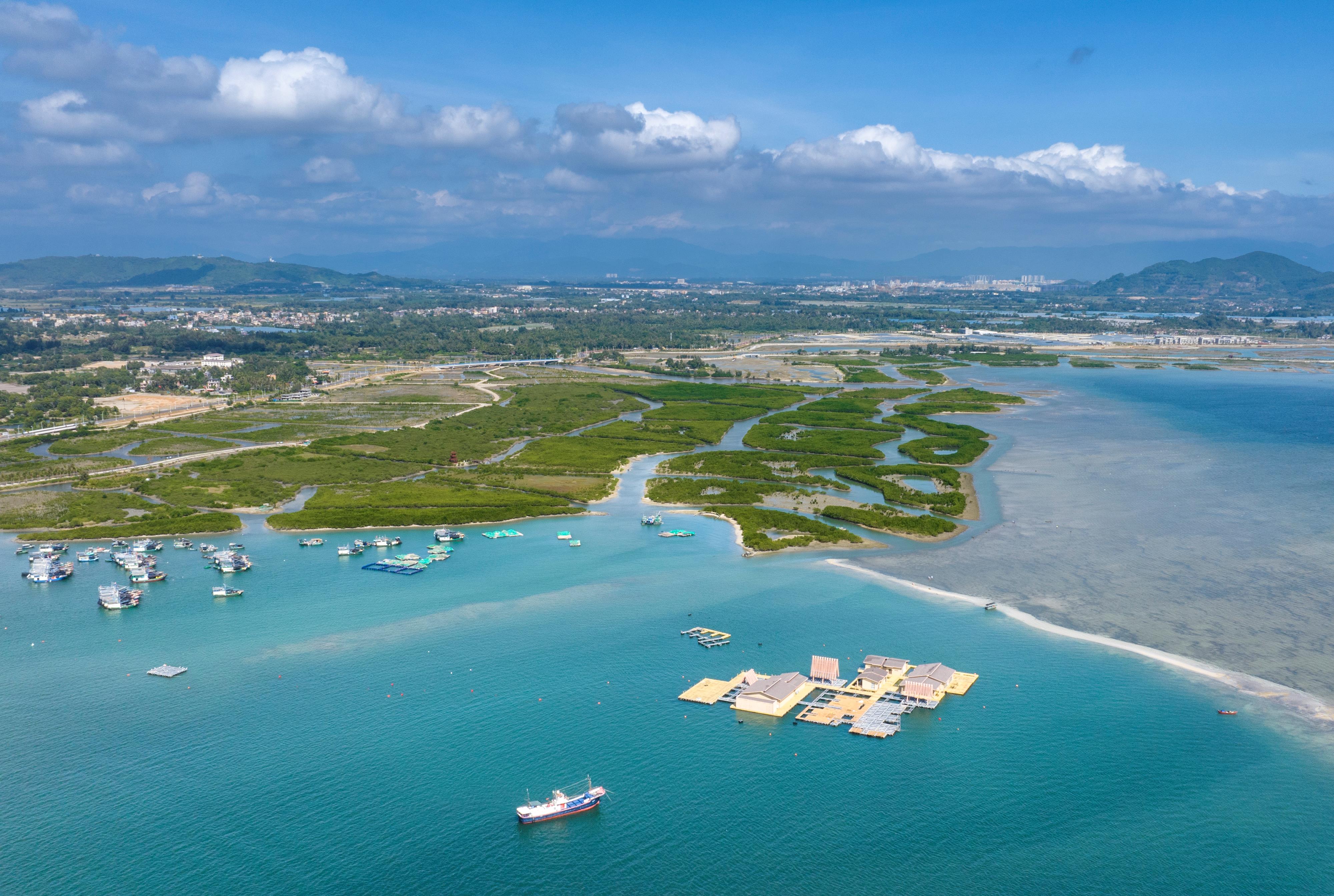△海南陵水紅樹(shù)林國(guó)家濕地公園。紅樹(shù)林素有“海岸衛(wèi)士、鳥(niǎo)類(lèi)天堂、魚(yú)蝦糧倉(cāng)”的美譽(yù),在凈化海水、防風(fēng)消浪、維持生物多樣性、固碳儲(chǔ)碳等方面發(fā)揮著極為重要的作用。