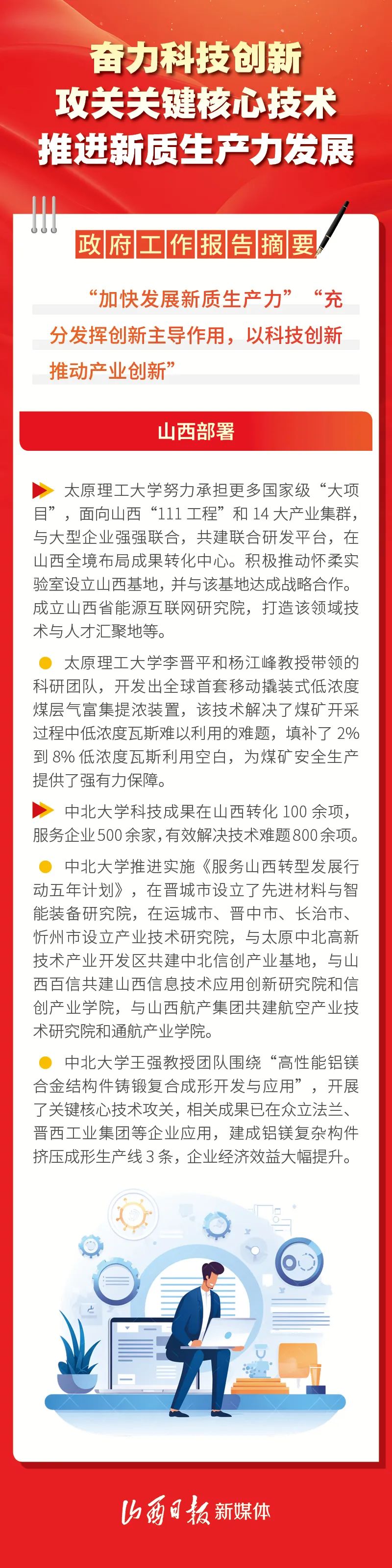 今年政府工作報告指出,堅持教育強國、科技強國、人才強國建設一體統(tǒng)籌推進,創(chuàng)新鏈產(chǎn)業(yè)鏈資金鏈人才鏈一體部署實施。這為山西高校更好地服務全省各地轉型發(fā)展、高質量發(fā)展提供了遵循。