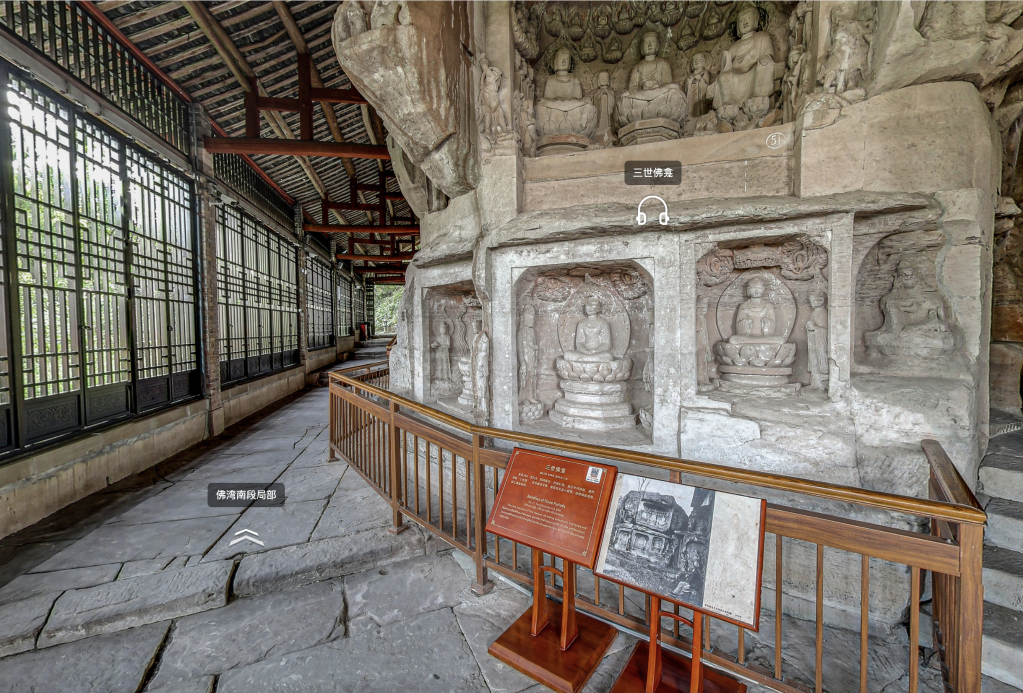 大足石刻數(shù)字博物館中的三世佛龕實景圖。(大足石刻數(shù)字博物館官網(wǎng)截圖) 此刻,打開數(shù)字博物館,進入“全景大足”中的北山石刻景區(qū),屏幕中的場景開始轉(zhuǎn)動,我們又看到了84年前的那張照片,展示在與當年拍攝點幾乎相同的位置。既是今昔對比,也是致敬。(新華社記者周文沖) (責任編輯:蔡文斌) |