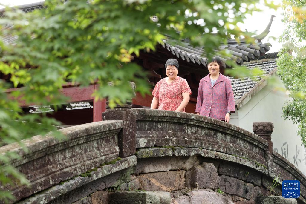 6月26日,村民在德清縣新安鎮(zhèn)舍北村萬善橋上散步。(新華社發(fā) 謝尚國 攝)