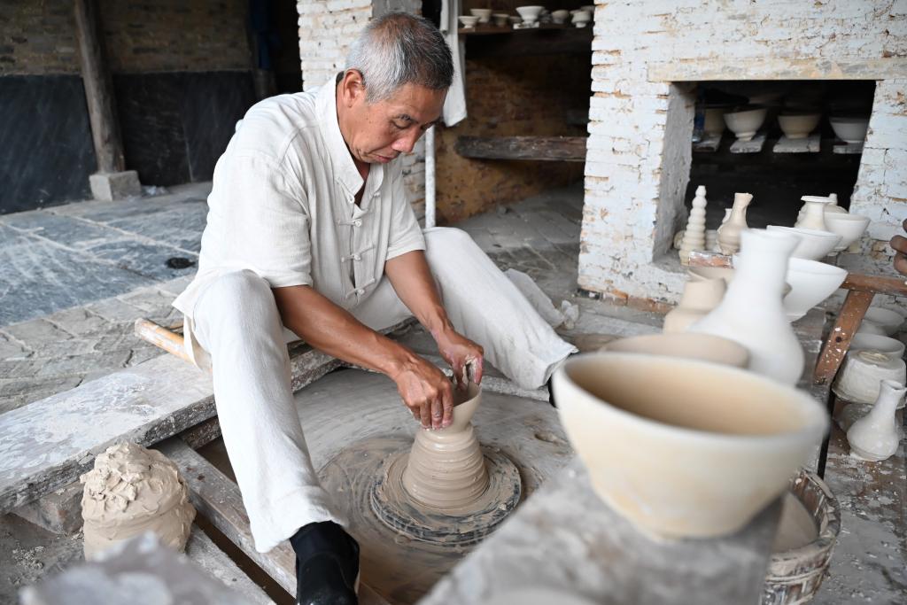 非物質文化遺產(chǎn)傳承人宗鴻新在拉坯。新華社記者 隋尚君 攝