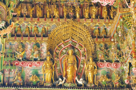 時(shí)光流轉(zhuǎn)近400年后,這些彩塑依舊流光溢彩、璀璨奪目、精美動(dòng)人、完整如新。展翅飛翔的仙鶴、飛動(dòng)騰躍的蛟龍、純潔的蓮花、富麗的牡丹,以及各種奇花異草,無(wú)不使人浮想聯(lián)翩、由衷嘆絕。