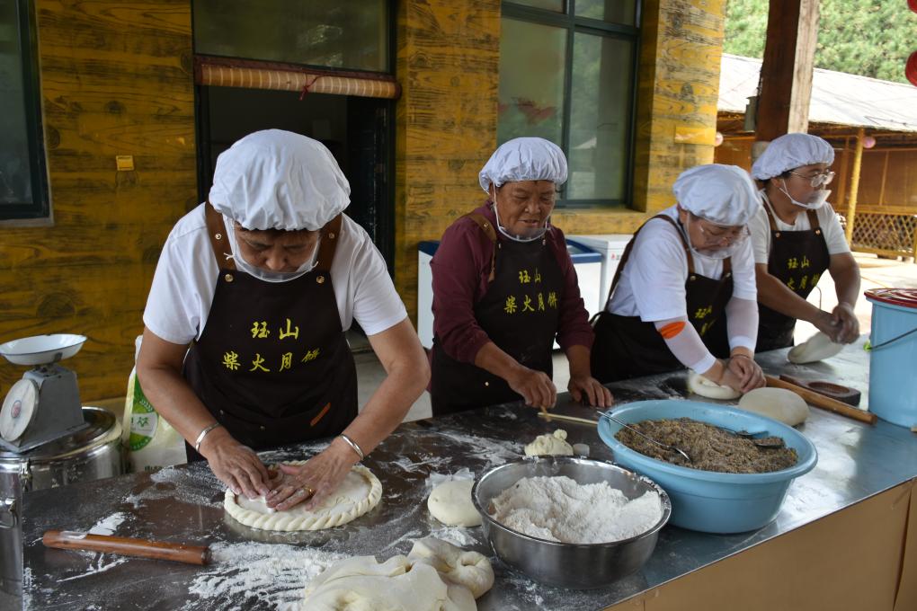 山西晉城玨山景區(qū)今年開展的打制粗月餅活動。新華社發(fā)(何向峰 攝)