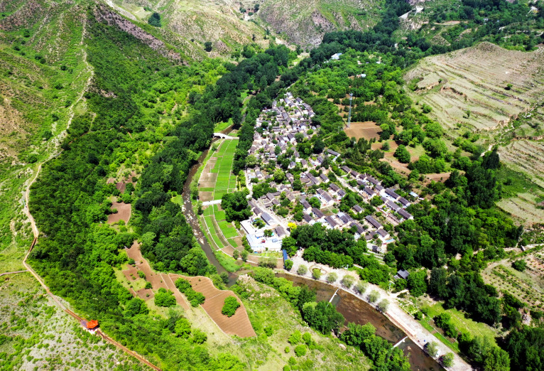 花塔村,因村后山勢如塔、桃花滿山而得名,地處太行山余脈、五臺山北支的丘陵盆地之中,村域面積144平方千米。花塔村四面環(huán)山,大山封閉,一河中流,進(jìn)入村莊須經(jīng)一條長827米的隧道,隧道內(nèi)陰暗潮濕,出隧道后豁然開朗,土地平曠,屋舍儼然,良田美池,具有清新自然的田園風(fēng)情。村落生態(tài)環(huán)境保護(hù)完整,有著獨特的氣候地貌和人文積淀,被譽為“晉北桃源”。