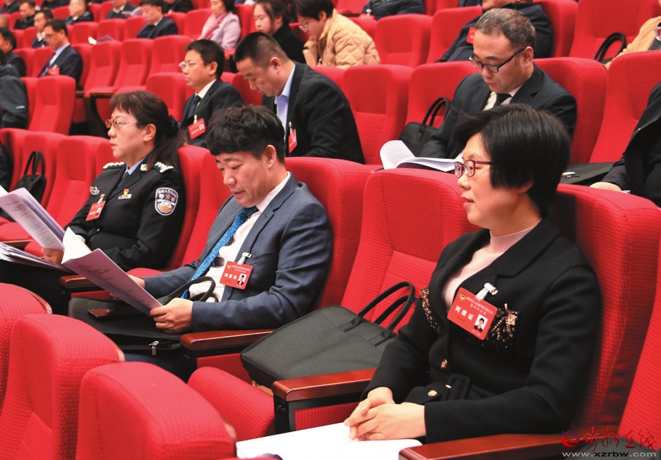 認(rèn)真聽取報(bào)告。 本報(bào)記者 劉紀(jì)森攝