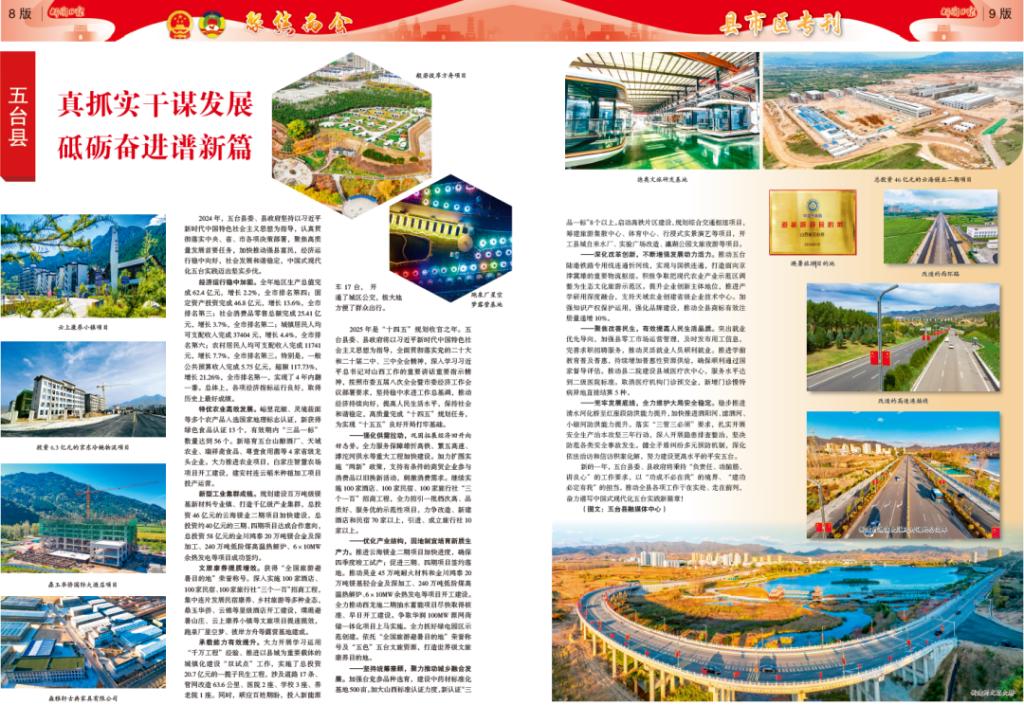 承載能力有效提升。大力開展學(xué)習(xí)運(yùn)用“千萬工程”經(jīng)驗(yàn)、推進(jìn)以縣城為重要載體的城鎮(zhèn)化建設(shè)“雙試點(diǎn)”工作,實(shí)施了總投資20.7億元的一攬子民生工程,涉及道路17條、管網(wǎng)改造63.6公里、醫(yī)院2座、學(xué)校3座、養(yǎng)老院1座。同時(shí),順應(yīng)百姓期盼,投入新能源車17臺,開通了城區(qū)公交,極大地方便了群眾出行。2025年是“十四五”規(guī)劃收官之年。五臺縣委、縣政府將以習(xí)近平新時(shí)代中國特色社會主義思想為指導(dǎo),全面貫徹落實(shí)黨的二十大和二十屆二中、三中全會精神,深入學(xué)習(xí)習(xí)近平總書記對山西工作的重要講話重要指示精神,按照市委五屆八次全會暨市委經(jīng)濟(jì)工作會議部署要求,堅(jiān)持穩(wěn)中求進(jìn)工作總基調(diào),推動經(jīng)濟(jì)持續(xù)向好,提高人民生活水平,保持社會和諧穩(wěn)定,高質(zhì)量完成“十四五”規(guī)劃任務(wù),為實(shí)現(xiàn)“十五五”良好開局打牢基礎(chǔ)。