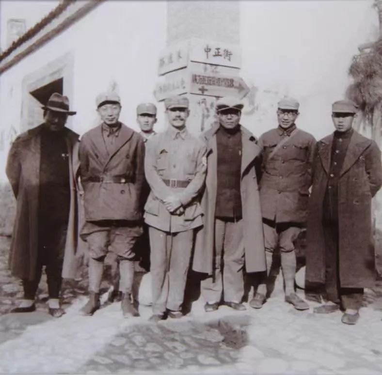 資料圖:1938年9月15日,白求恩模范病室建成典禮后,白求恩和晉察冀邊區(qū)領(lǐng)導在松巖口街上合影留念。左四為白求恩。