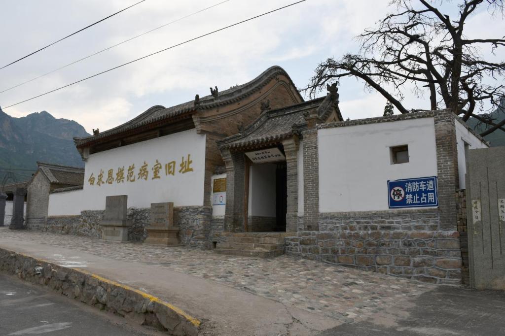 1938年9月15日,白求恩模范病室正式建成,展開了一系列專業(yè)性醫(yī)療救治工作,培訓出一批醫(yī)護人員。但由于日寇慘無人道的掃蕩,10月上旬,病室在戰(zhàn)火中燒毀,僅存大門門樓和院內(nèi)一棵800多年的古松。